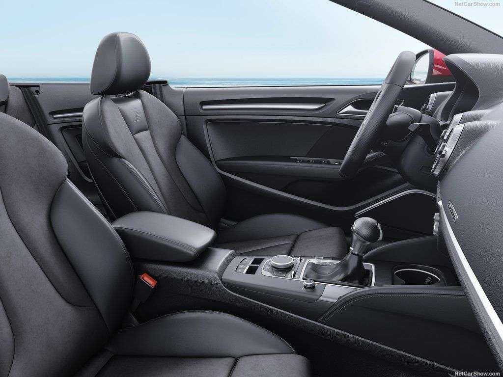 Несмотря на наличие складывающейся мягкой крыши, внутреннее оформление Audi A3 Cabriolet 2017 г. полностью повторяет таковое в седане и хэтчбеке А3, и это неплохо, так как салон не только смотрится стильно и современно, но и отличается традиционно высокой эргономикой. Место водителя представлено оригинальным слегка срезанным снизу рулевым колесом, позволяющим управлять настройками бортового компьютера и мультимедийной системой, а также лаконичной панелью приборов, которая в качестве опции может быть полностью цифровой.