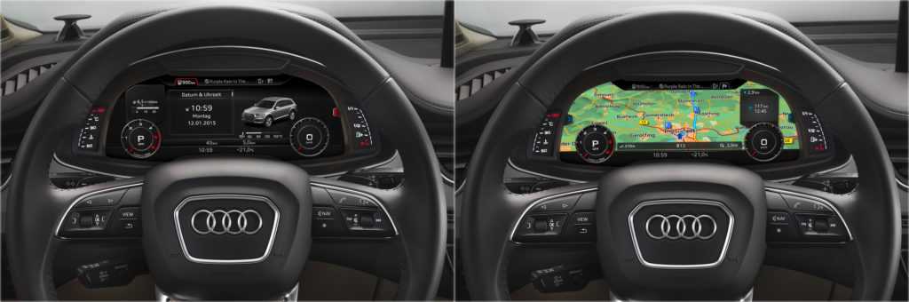 Третий дисплей Audi Q7 Для виртуальной кабины Audi есть 12,3-дюймовый экран, который дает водителю множество вариантов конфигурации.