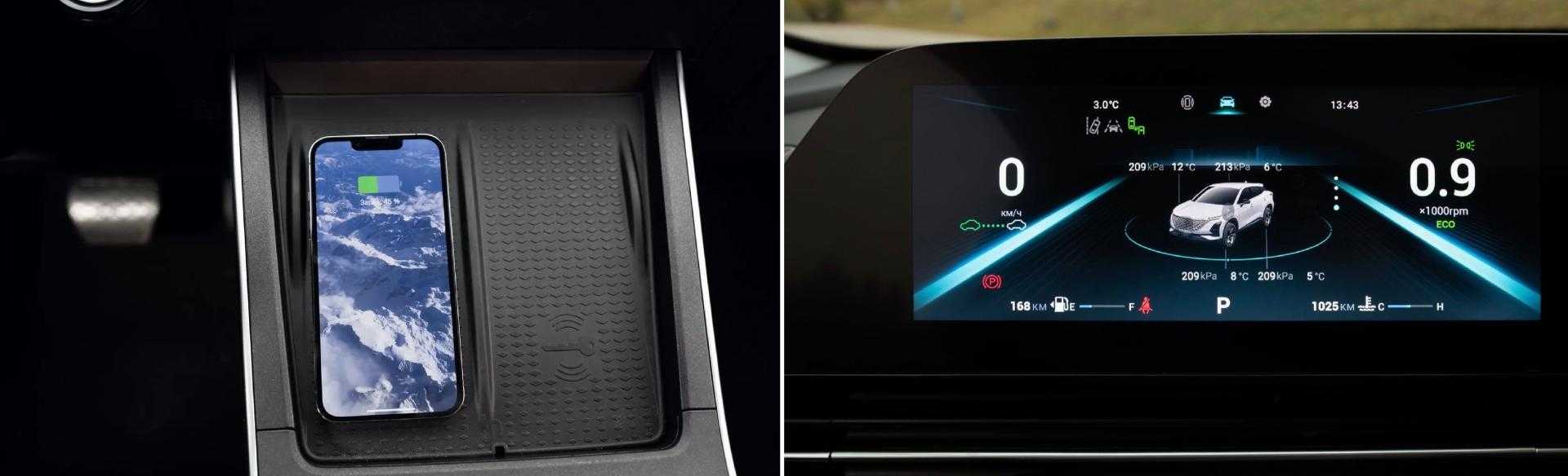 Панель приборов в Arrizo 6 Pro полностью цифровая диагнональю 10.25 дюйма, а мультимедийный сенсорный экран такого же размера огранично вписан в торпедо.