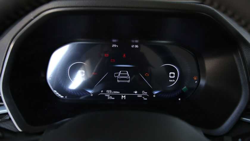 Вид панели приборов в автомобиле Chery Tiggo 4 Рестайлинг, с рабочего места водителя