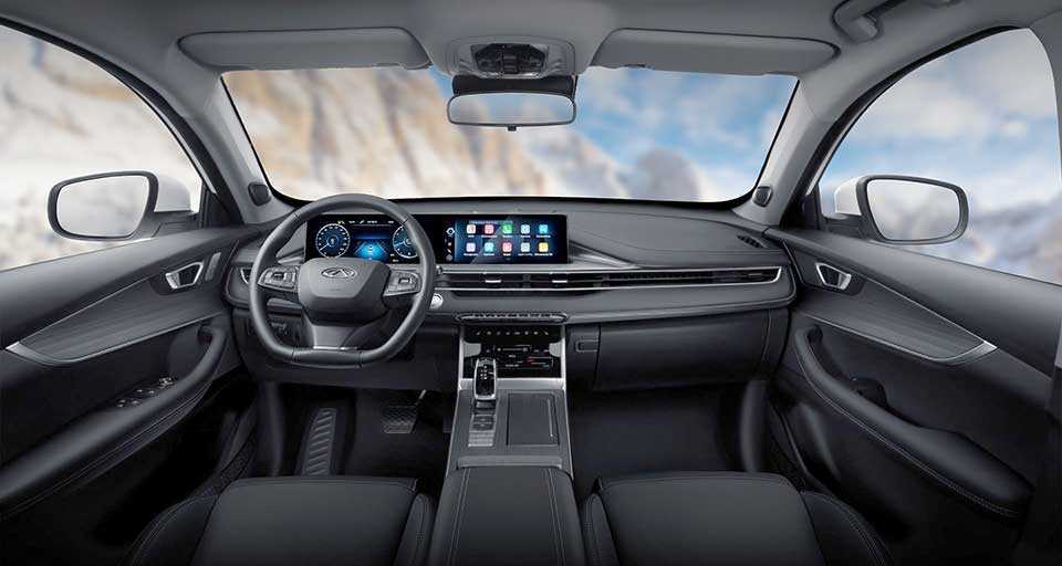 Интерьер Chery Tiggo 7 Pro полностью соответствует концепции производителя. Трехспицевое рулевое колесо, оснащенное множеством регулировок, усечено снизу для удобства управления. Приборная панель полностью виртуальная, а ее диагональ составляет 12,3 дюйма. Мультимедиа система, расположенная над центральной консолью, имеет сенсорный 12,25-дюймовый экран, на который выводится навигация, MP3 проигрыватель, время, прочая полезная информация. Под экраном мультимедиа вмонтирован 8-дюймовый дисплей, с помощью которого регулируется работа климат-контроля.