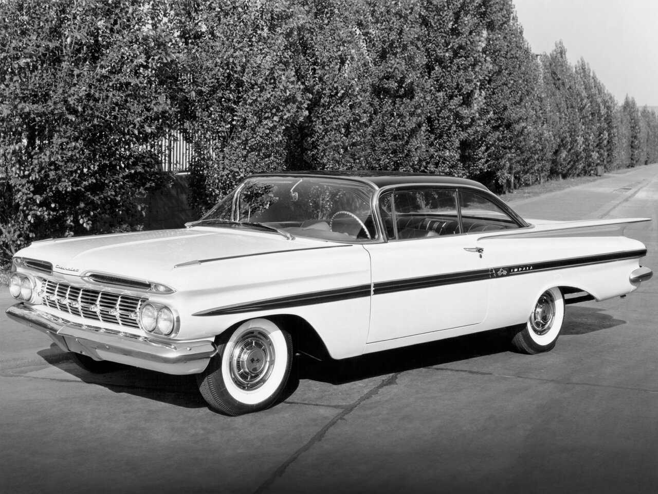 1959-й год подарил Шевроле Импале «хвост русалки» с необычными аэродинамическими отростками на задней части кузова и каплевидные «глаза-фонари» на корме, которые пришли на смену шести круглым фарам.