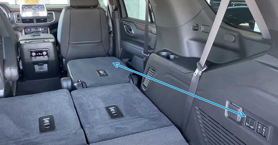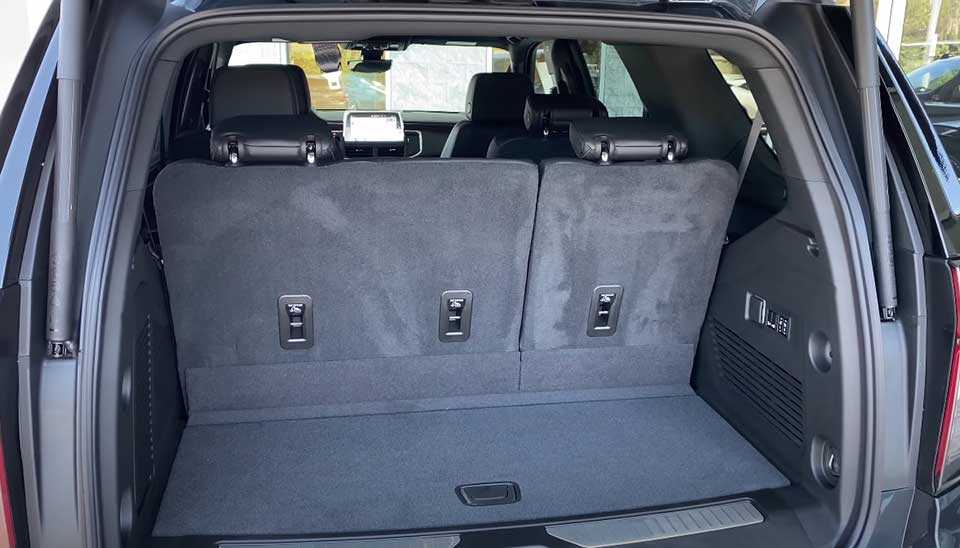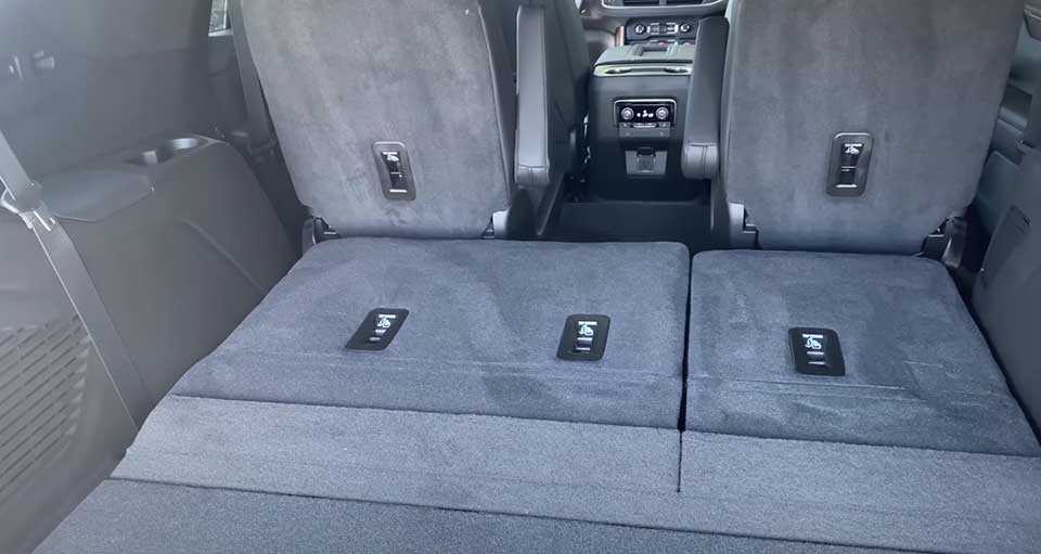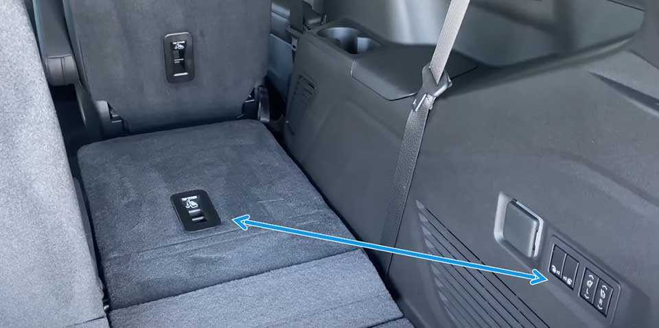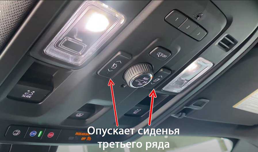 Спинки сидушек третьего ряда, разделенные в пропорции 60/40, складываются с помощью кнопок на правой боковой обшивке багажника.