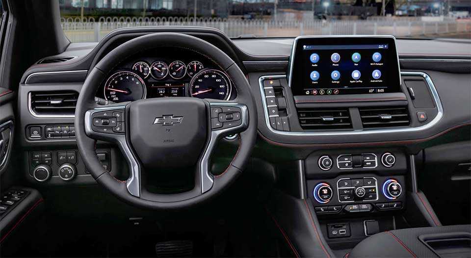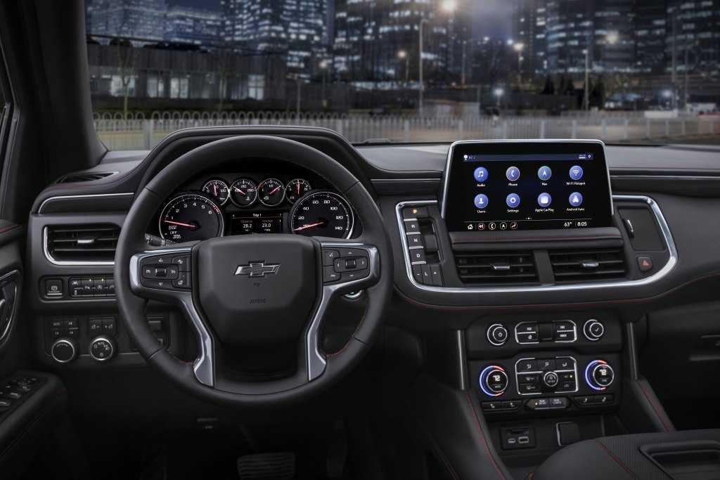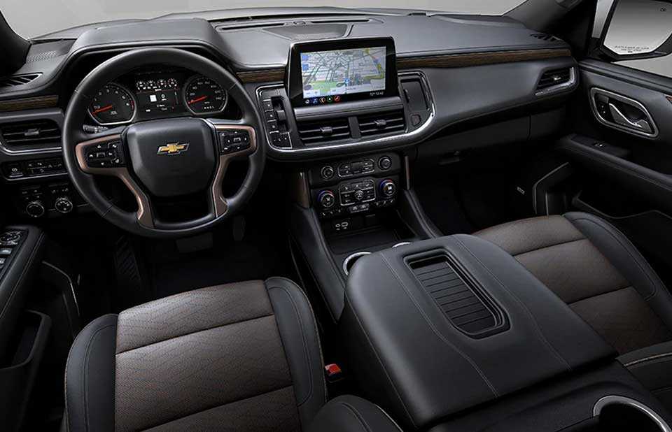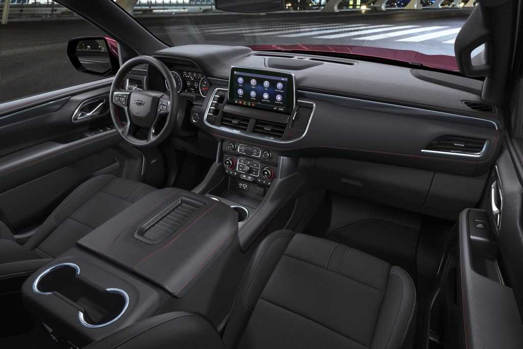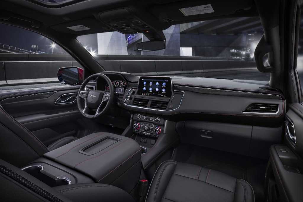 Салон у обновленного Tahoe претерпел более серьезные изменения: сейчас он выдержан в современной стилистике. Внутреннее пространство обильно обшито искусственной кожей, вдоль которой дизайнеры проложили тонкие контрастные ленты. Глубоко переработанная центральная консоль сохранила россыпь физических клавиш, но они располагаются иначе. Несмотря на столь значимые изменения, салон Tahoe сохранил знакомую конфигурацию с квадратными и прямоугольными деталями, характерными для всех поколений американской модели.