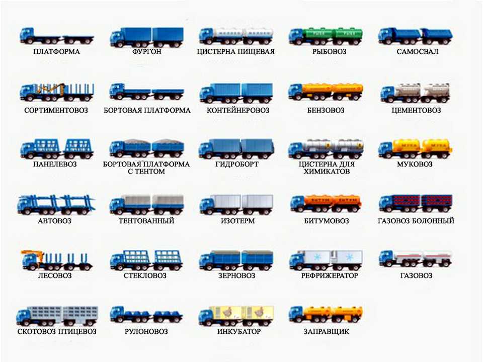 Также есть общепринятая классификация грузовиков по предназначению автомобильного подвижного составляющего, которую мы приведем в таблице ниже. В ней есть специальные цифровые обозначения, где 1 — тип грузовика по полной массе, 2 — категория АТС (автотранспортного средства): 3 — это пикап или бортовая машина, 4 — тягач седельный, 5 — самосвал, 6 — цистерны, 7 — фургоны, 8 — резерв, 9 — специальное назначение.