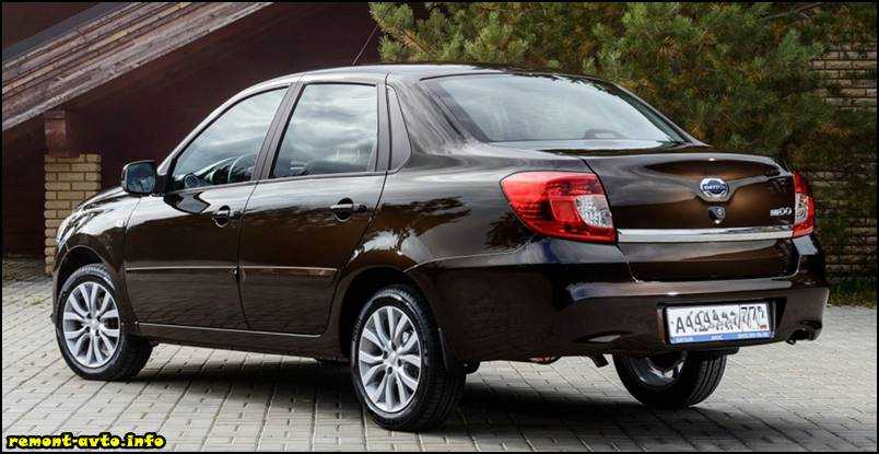 Надо признать, что черты, характерные для продукции крупнейшего отечественного автопроизводителя, прослеживаются и в новом автомобиле. Однако передняя часть машины (нельзя не полюбоваться на хорошую работу японских дизайнеров) придаёт новому Датсуну свой собственный, характерный облик. Большая крышка багажника удобна тем, что можно без труда погрузить даже габаритную поклажу. Светотехника на капоте и на багажнике смотрится стильно и современно.