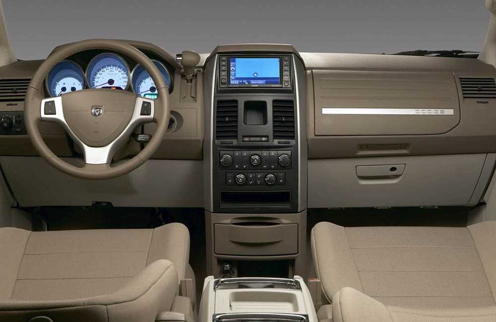 Интерьер Dodge Caravan приятно удивляет. Выглядит ещё современнее, нежели у сегодняшнего конкурента. Красиво оформленная приборная панель, стильный мультируль в распоряжении у водителя, мультимедийный комплекс, симпатичный блок управления климатом.