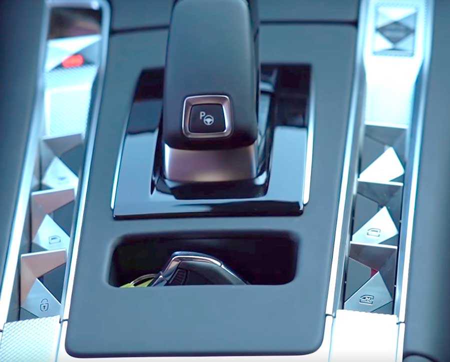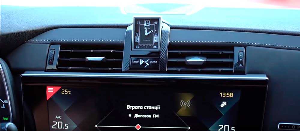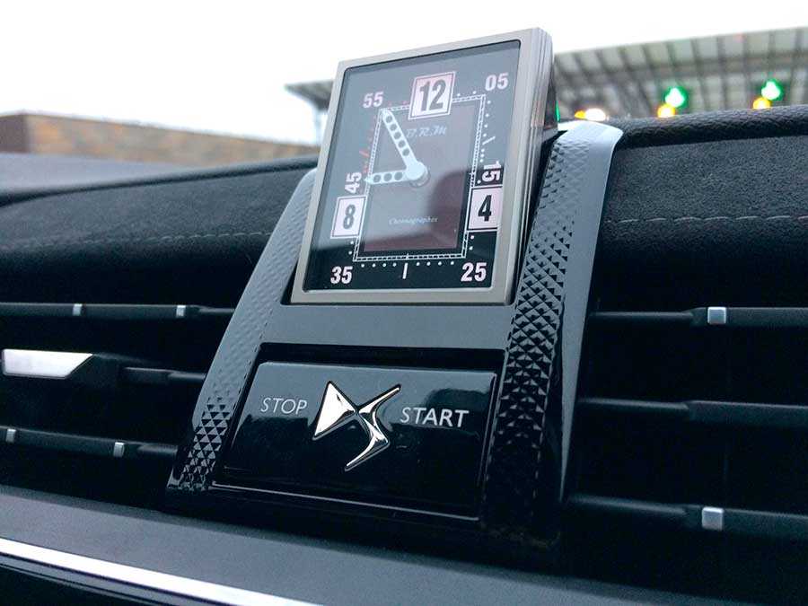 По центру торпедо имеется кнопка запуска двигателя, при нажатии на которую появляется циферблат вращающихся часов именитой фирмы B.R.M R180.