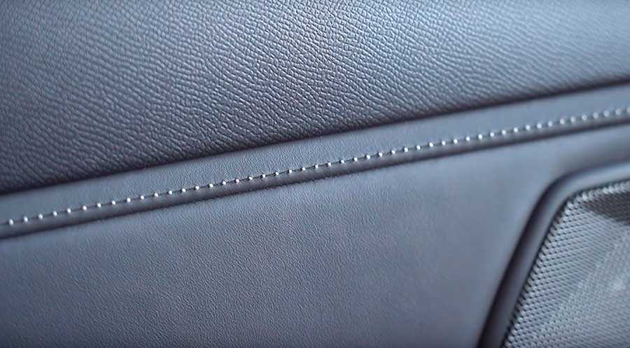 Приборная панель, передняя консоль и обивки дверей отделаны качественным мягким материалом, на котором видна прострочка ручной работы.