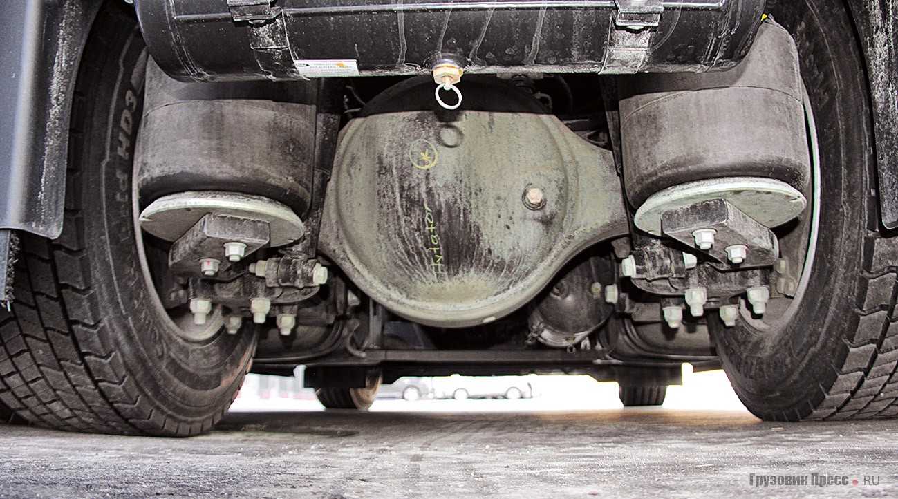 Передний мост грузоподъёмностью 7,5 т на параболических рессорах, сзади пневматика по двухбаллонной схеме грузоподъёмностью 11,5 т. Высота седельно-сцепного устройства – 1140 мм, толщина его монтажной плиты – 12 мм, максимальная вертикальная нагрузка – 20 т.
