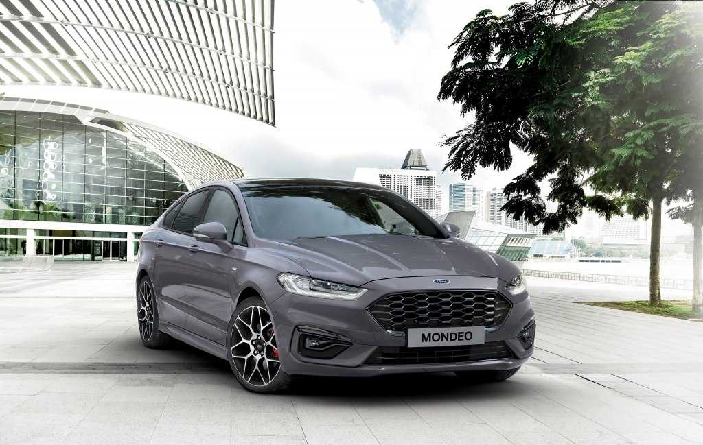 Новых деталей во внешнем виде Ford Mondeo 2020 не так уж и много. Авто представлено в двух модификациях – седан и хэтчбек. Основные усилия разработчики направили на внутреннее оснащение. Хотя нельзя не отметить разницу во внешности между двумя типами кузовов. Внешний вид авто сохранил отличительные черты семейства Форд. Однако кузов был все же был доработан. Улучшились аэродинамические свойства. В результате тюнинга, сопротивляемость ветровым потокам уменьшилась на 15%. Немного изменился бампер в передней части. Передние стойки устанавливаются под более острым углом, что сделало внешний вид машины злее. Осталась на месте узнаваемая «фордовская» радиаторная решетка с крупными ноздрями. Ее горизонтальные вставки теперь украшены хромом. По бокам от решетки разместились раскосые головные фары. В целом, внешний вид машины выглядит гармонично, как и подобает солидному автомобилю.