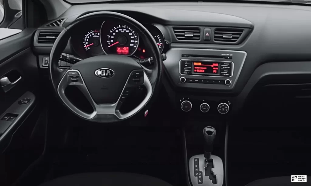 Киа Rio третьего поколения оснащается информативной и эргономичной приборной панелью. Салон ТС выполнен в минималистическом стиле. Обивка кресел изготовлена из износостойкой ткани, а обшивка приборной панели исполнена из жесткого матового пластика.