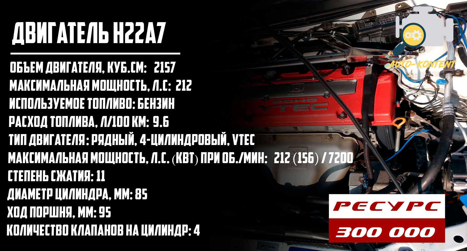 - H22A7 – 2.2-литровый движок на 212 лошадиных сил, агрегируется механикой;