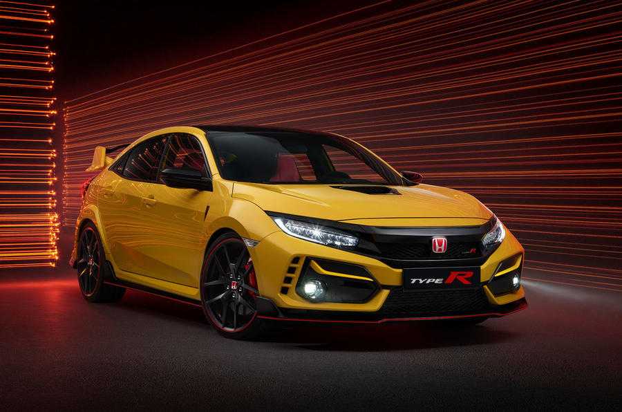 «Горячей» версии Honda Civic Type R 2020 также достались преимущественно внешние изменения дизайна: дополнительные накладки на переднем бампере, иная решетка радиатора и новый цвет окраски кузова (Boost Blue).