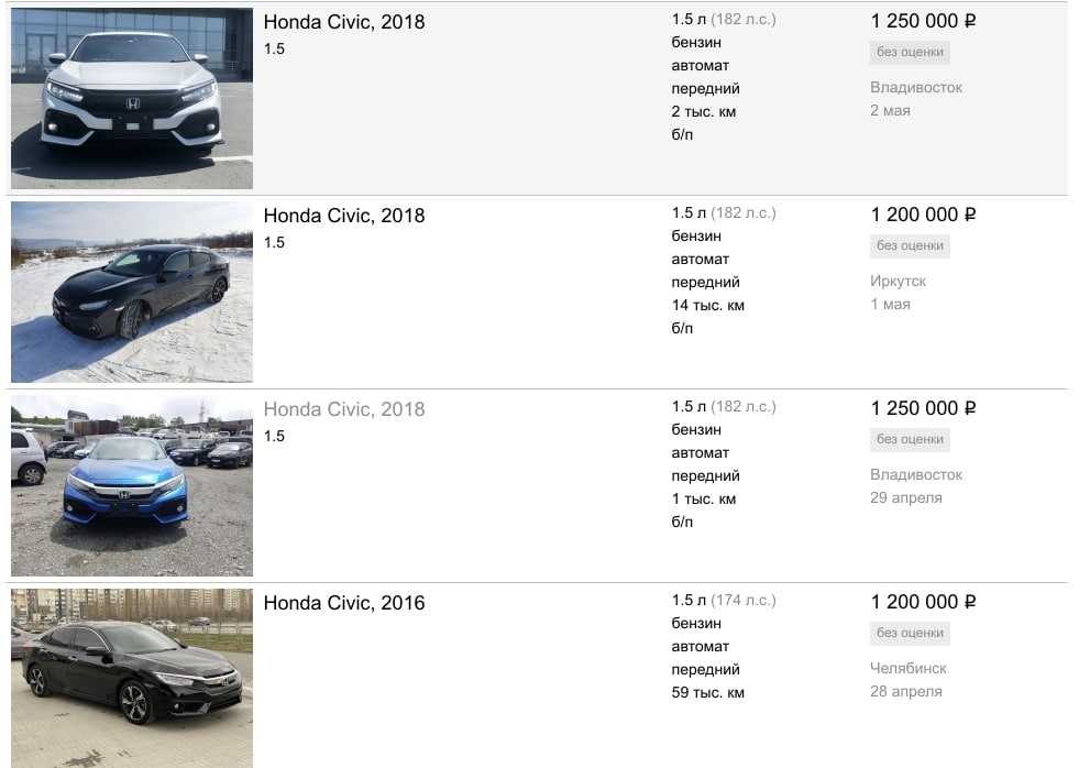 В России Хонда Цивик 2018 г, официальными дилерами не продаётся, недавно появился слух, что Honda планирует вернуть в Россию и Аккорд 2018 г и Civic, но пока что это слухи. В США новый кузов начинается от 19 000 $ (1 290 000 в рублях), с растаможиванием и пригоном в Россию получится около 2-х миллионов.