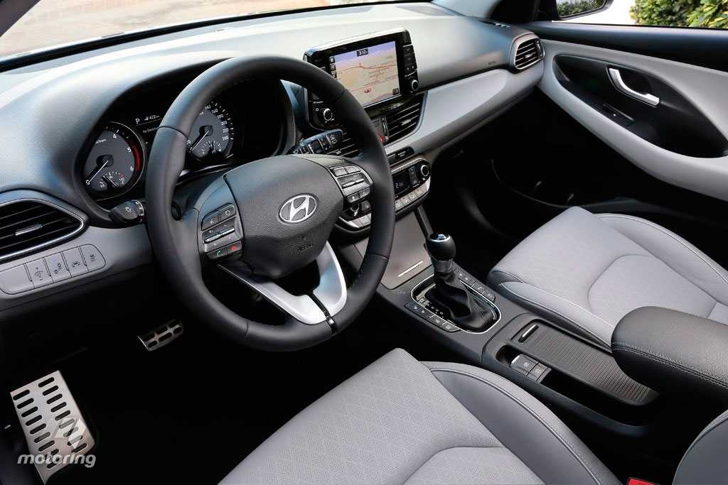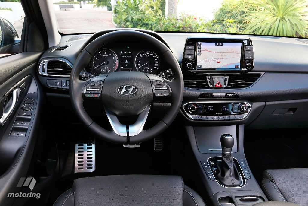 Динамично спроектированный кузов так и манит сесть в салон. И вот тут, к сожалению, водителя может ожидать довольно сильное разочарование, ведь его дизайн явно отличается от спортивной концепции кузова. Рулевое колесо, приборная панель и приборы в основном такие же, как в классическом Hyundai i30. Например, нет дополнительных индикаторов, показывающих параметры работы двигателя или турбокомпрессора, более персонализированных циферблатов или, прежде всего, спортивного рулевого колеса меньшего размера. К счастью, полностью от спортивной фурнитуры производитель не отказался и добавил в салон i30 Turbo спортивные сиденья, отделанные бордово-черным материалом и кожей, хорошо ложащийся в руку рычаг КПП (тоже бордового цвета), алюминиевые накладки на педали и черную обивку крыши.