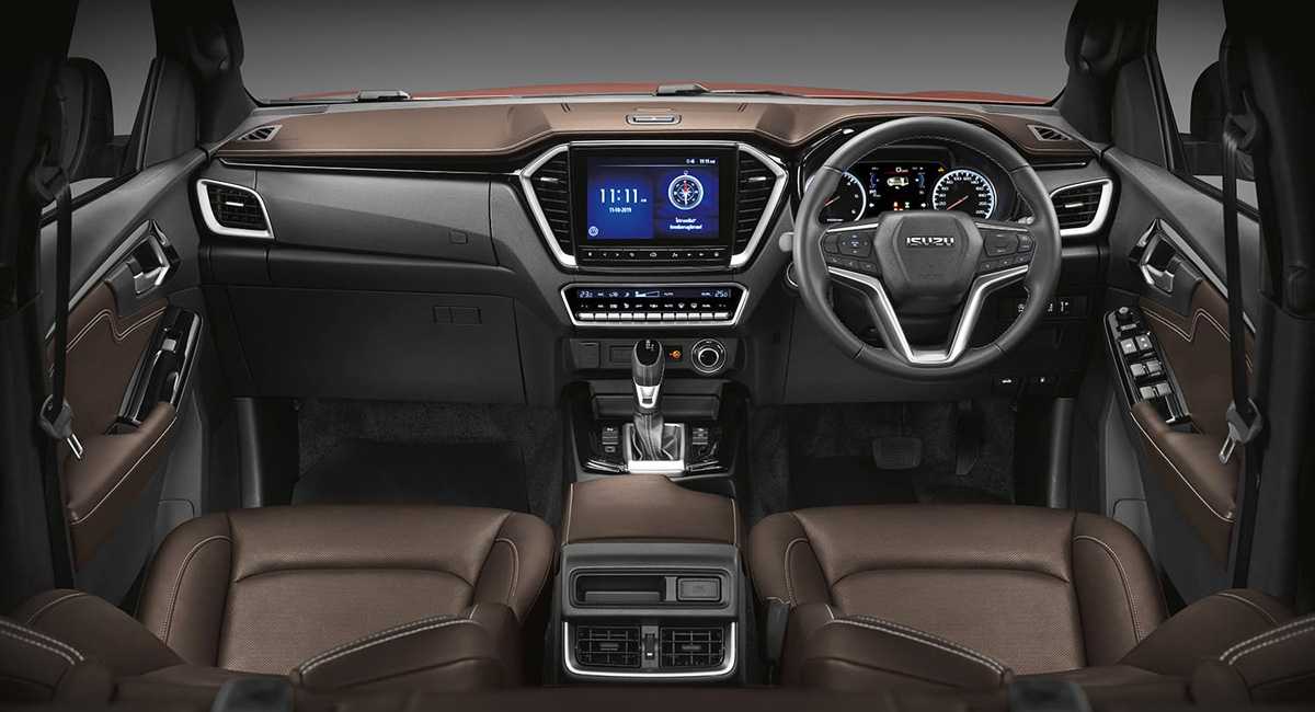 В салоне появились мультимедиа Isuzu Connect с тачскрином диагональю 8´, аудиосистема с дополнительной колонкой на потолке и модифицированная приборная панель с цветным TFT-дисплеем.