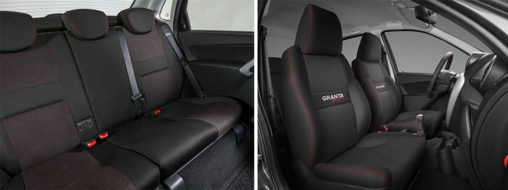 Изменения конечно же коснулись и интерьера. Появились новые сиденья, имеющие боковую поддержку, с вышитыми надписями «Lada Granta Sport».