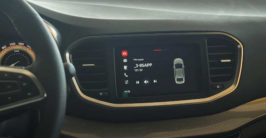 В средней комплектации предусматривается мультимедиа с 7-дюймовым дисплеем, в более дорогих версиях АвтоВАЗом будет предлагаться мультимедийный экран выносного типа в виде планшета, закрепленный на панели приборов вертикально.