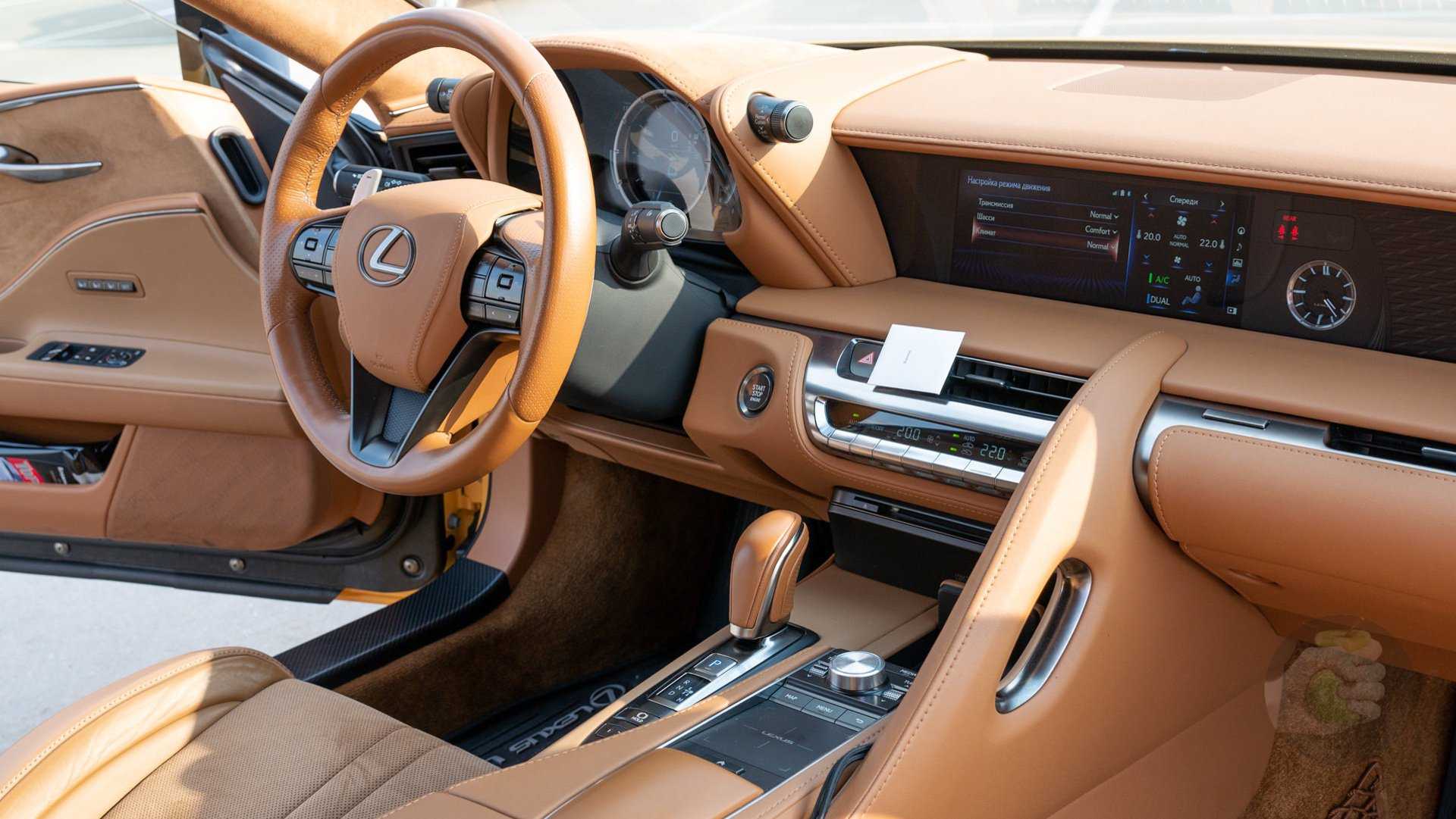 В другом же внутреннее убранство новинки целиком соответствует требованиям, которые предъявляются к серийным спорт-купе люксового класса. Нужно сказать, что производитель сохранил обычную для модельного ряда Lexus манеру оформления салона авто. У водителя в распоряжении небольшой руль с подрулевыми лепестками переключателя скоростей, небольшая, но хваткая рукоятка КПП, стильная цифровая панель приборов и комфортное управление мультимедиа системой, чья сенсорная панель размещается справа от водителя.