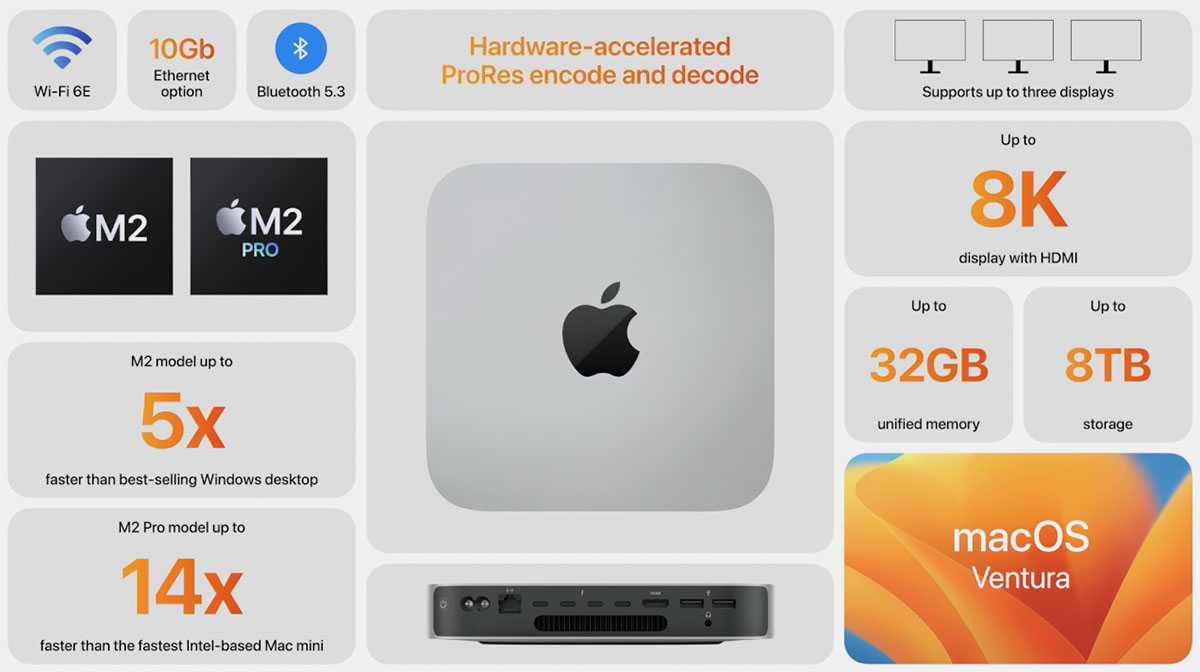 Базовые модели Mac mini на чипе M2 получили незначительный апгрейд железа и сейчас доступны в таких конфигурациях: