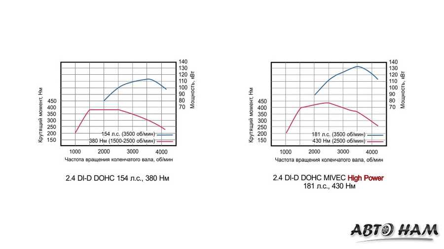 | Система питания | непосредственный впрыск, два распредвала (DOHC), привод ГРМ цепной | непосредственный впрыск, электронная система управления клапанами MIVEC, два распредвала (DOHC), привод ГРМ цепной |