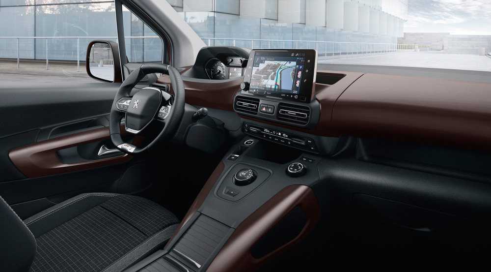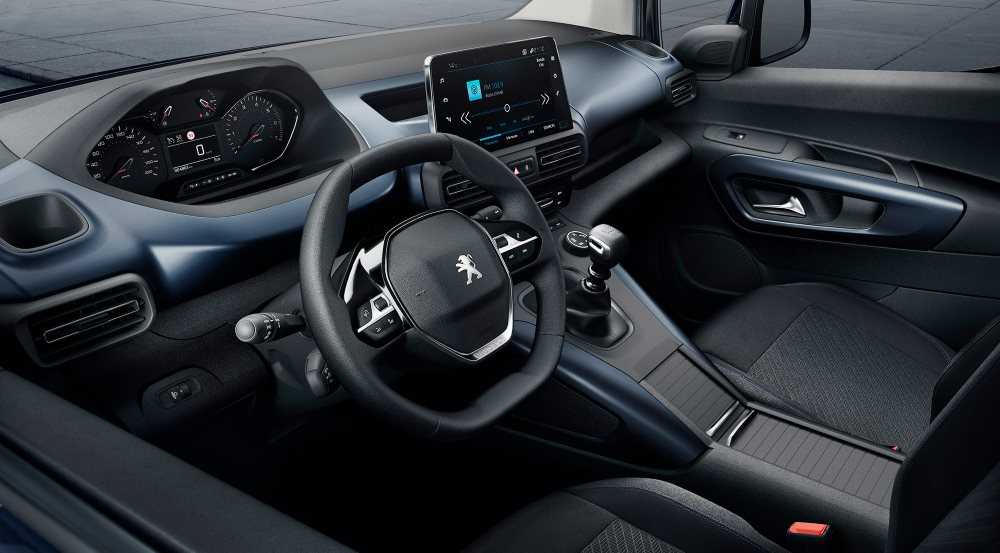 Концерн PSA для модели разработал оригинальную переднюю панель. Архитектура i-Cockpit, с которой мы уже знакомились на кроссовере 5008, включает в себя маленький руль и расположенную над его ободом комбинацию приборов. В виду сильно высоко вынесенного щитка приборов от большого перчаточного ящика перед водителем пришлось отказаться. 8-дюймовый дисплей мультимедийной системы по четкости и возможностям не уступает легковым моделям компании. Среди них: подключение смартфона по беспроводным протоколам, вывод картинки «телефонной» навигации на дисплей и пр.