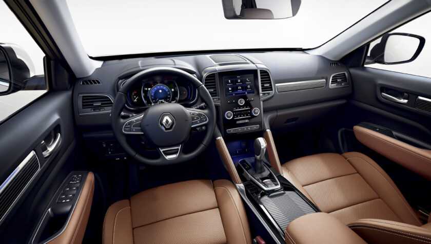 Единственное изменение интерьера Рено Колеос 2021 модельного года – это новая светло-коричневая кожа Riviera Camel для отделки сидений, дверных подлокотников и ручек на центральном тоннеле.