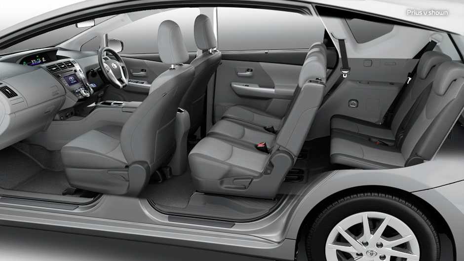 Тойота Приус V стоит, что зависит от комплектации, смело относить как к категории «универсалов» (на 5 мест), так и минивэнов (на 7 мест). Вместительность – один из плюсов рассматриваемой линейки брендовых машин.