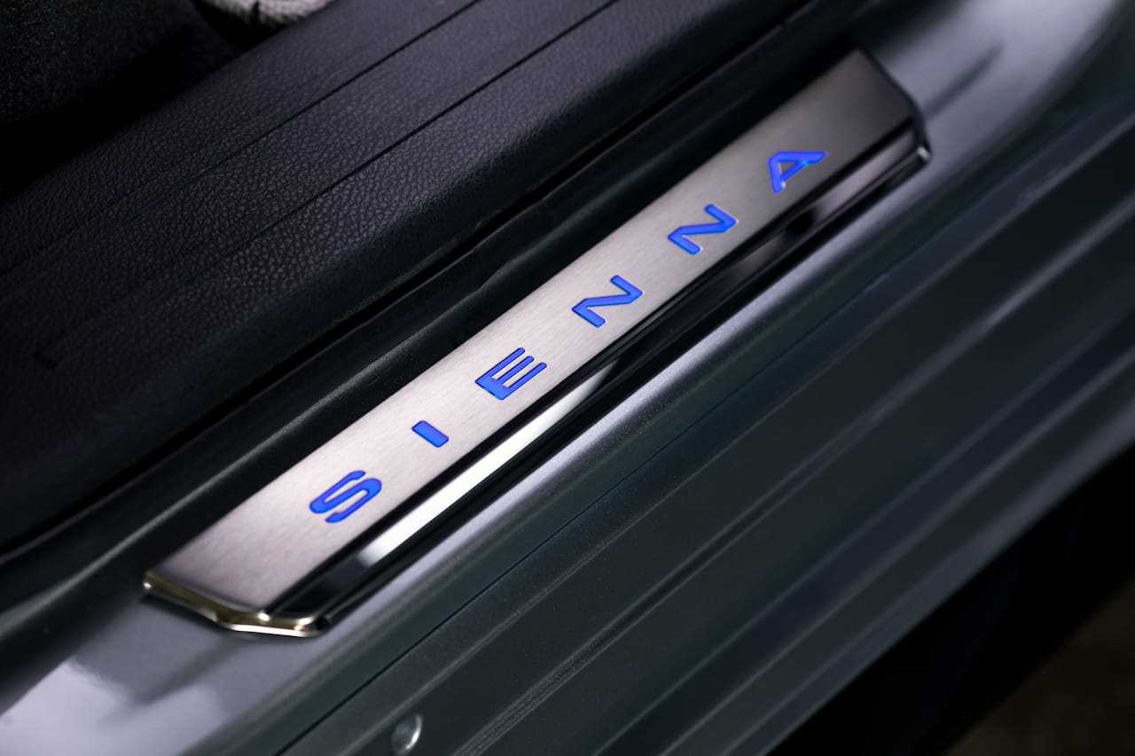 The 2023 Sienna 25th Anniversary Edition borrows bolder bumpers, black ORVM caps, 20-inch five-spoke wheels, and a sport-tuned suspension from the XSE grade. Plus, it has roof rails, JBL audio system, navigation, wireless charging, and a 1500-watt converter from the XSE Plus package. Features shared with the Limited grade include ORVMs with memory, auto-dimming, puddle lights, power-fold, and a reverse-tilt down function, illuminated door sills, black leather upholstery with silver stitching, heated and ventilated front seats with memory, memory steering column, and second-row seats with ottomans.