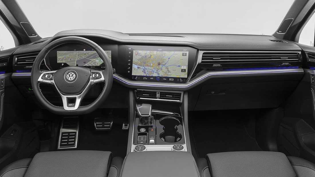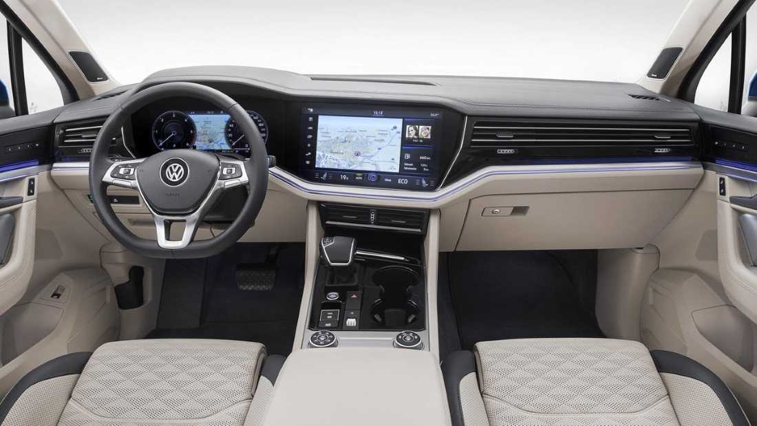 Внешне новинка выглядит как слегка модернизированный предшественник, дизайнеры решили не вносить кардинальных изменений. Но в салоне произошли весьма серьезные перемены. Конечно, начальные комплектации Фольксваген Туарег внутри выглядят весьма просто – аналоговый приборный щиток, система мультимедиа с обычным дисплеем, климат-контроль с разделением на две зоны, тканевая отделка салона и т.д.