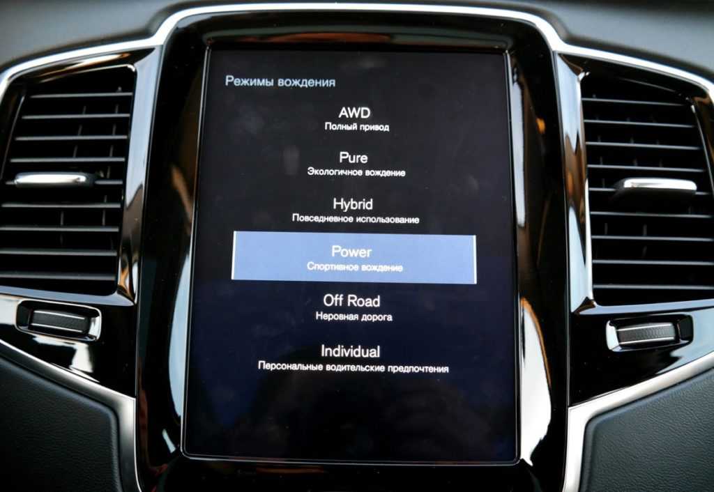 Начнем с режима Pure, в котором машина двигается исключительно за счет заряда аккумулятора. Это если верить словам производителя. Однако во время движения Вольво все равно иногда прибегает к помощи бензинового движка в автоматическом режиме. К слову, расход последнего при этом минимален – 2 литра на сотню километров. Кстати, в данном режиме машина также автоматически снижает подвеску, опускается. Это позволяет повысить динамические характеристики.