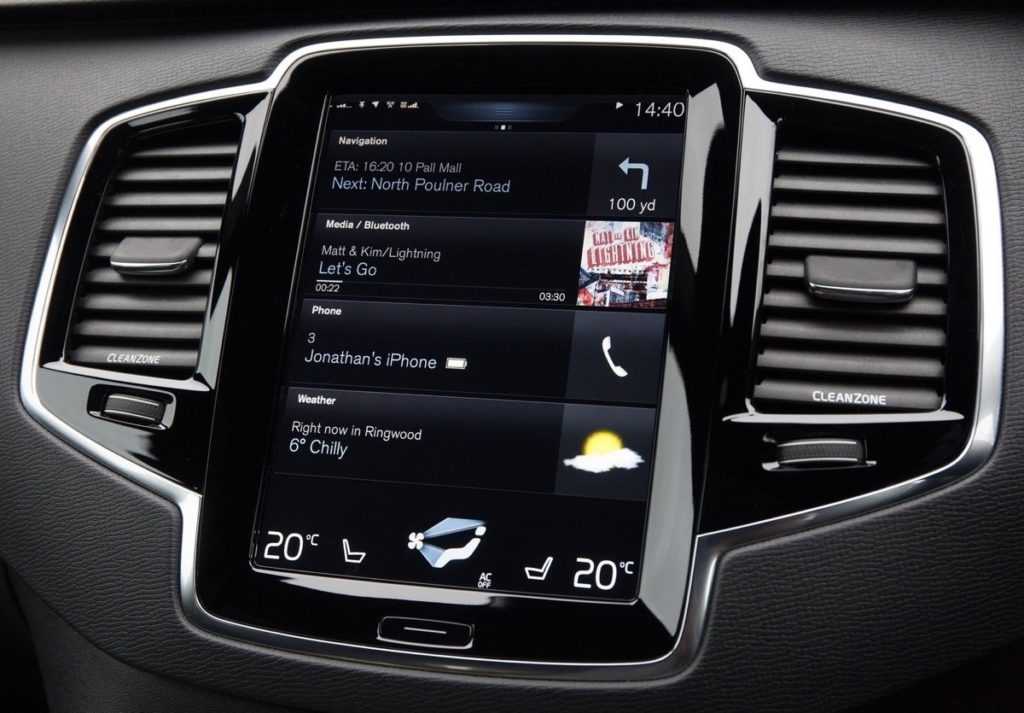 Информационно-развлекательная система Volvo Sensus размещена на вертикально ориентированном 9-дюймовом сенсорном экране. Он контролирует большинство функций автомобиля, включая регулировку сидения и настройки климата. В целом интерфейс довольно удобный.