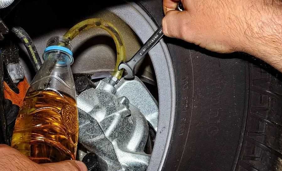 Когда цилиндр выйдет из своего гнезда, выльется небольшое количество тормозной жидкости, соответственно в бачке уровень жидкости просядет, придется опять долить его до краев. Пережимать тормозной шланг чем-либо не рекомендуется во избежание его повреждения и растрескивания.