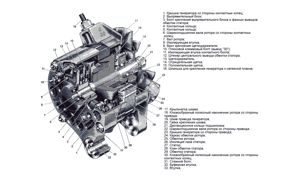 Но на деле это не играет особой роли. Ведь строение у всех генераторов, применяемых для ВАЗ 2110, одинаковое. Потому давайте разберемся в схеме и устройстве данного агрегата.