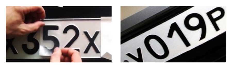 После того, как вам привезли наклейки, вам нужно просто распечатать набор и достать пленочки. Поверхность номера перед оклейкой стоит почистить и обезжирить любым составом на спиртовой основе. Затем остается только приложить самоклейку к нужным символам, да и все. Через полчаса уже можно тестировать приобретение. Сцепка с поверхностью происходит моментально, а высыхает окончательно номер в течение часа. Это куда быстрее чем удивительно долго сохнущие, но такие же малоэффективные антирадарные спреи.