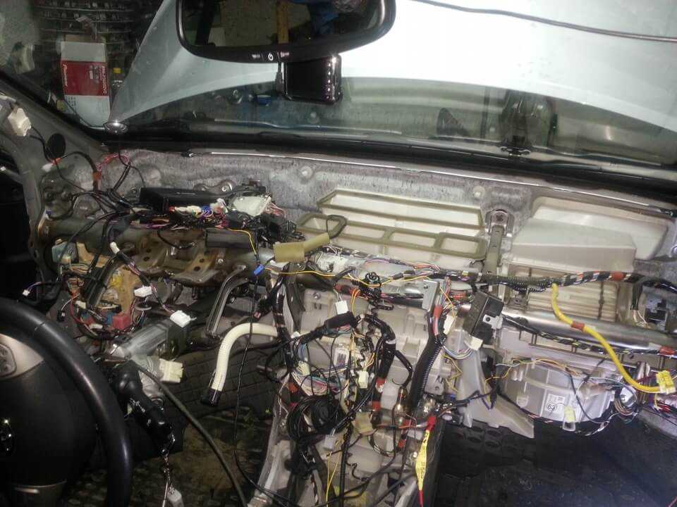После этого приступают к удалению болтов. Нужно открутить их с бардачка и на панели приборов в проеме. Затем снять бардачок и обрамление вокруг руля. Это позволит удалить панель вместе с разъемами.