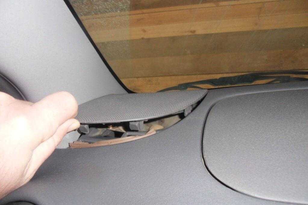 - Отщелкиваем закрывающие пукли, расположенные на приборной панели около боковых динамиков.