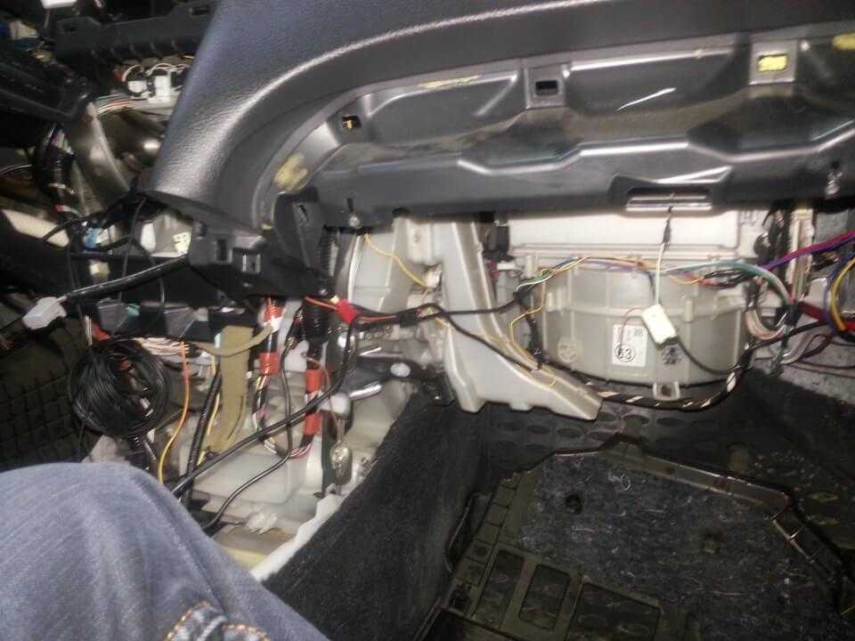 - Под бардачком находим болты крепления подушек безопасности и откручиваем, отсоединяем разъемы.