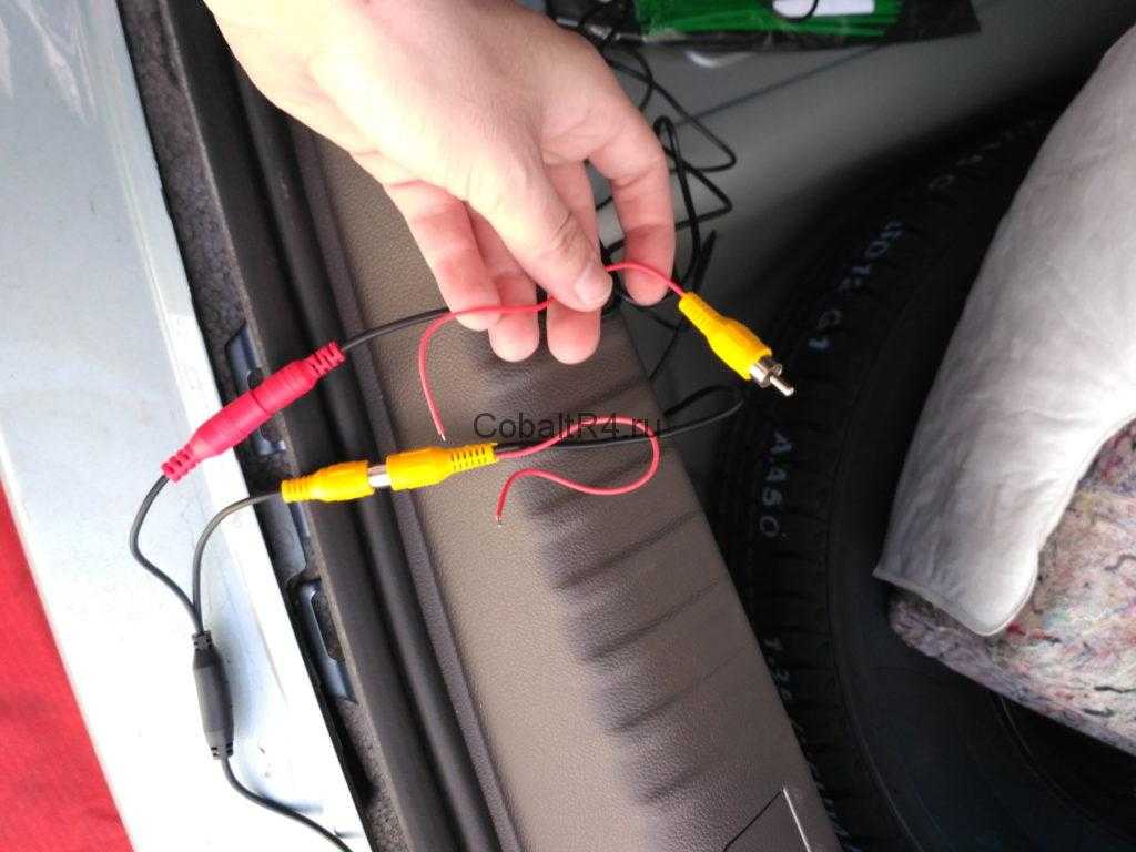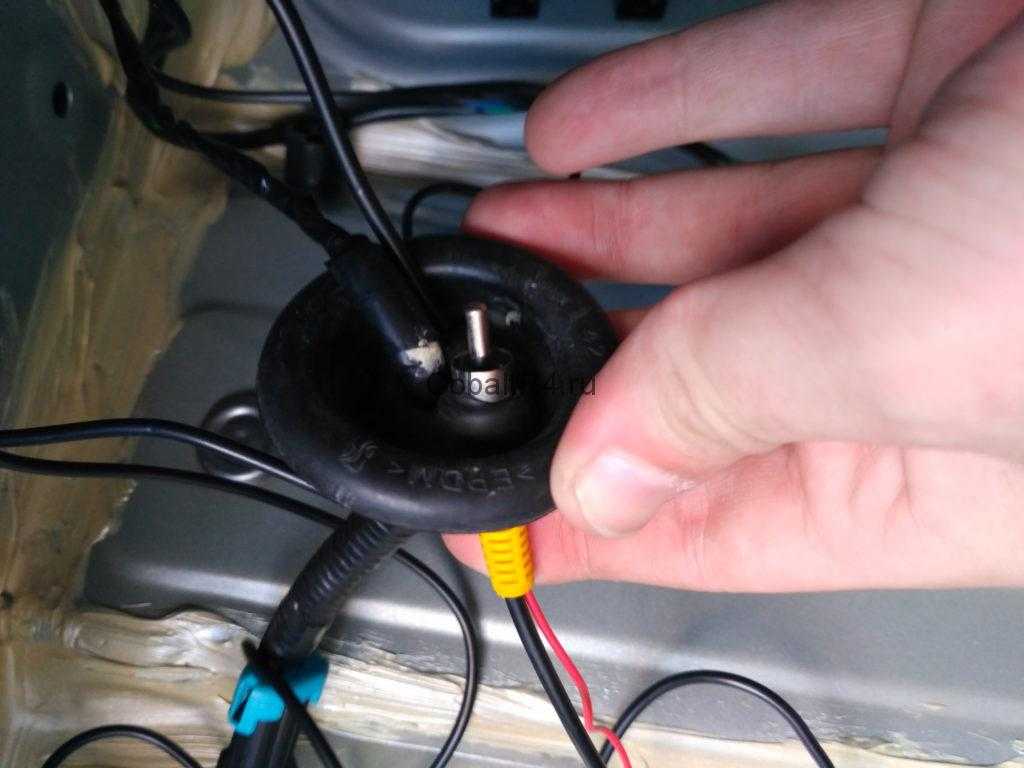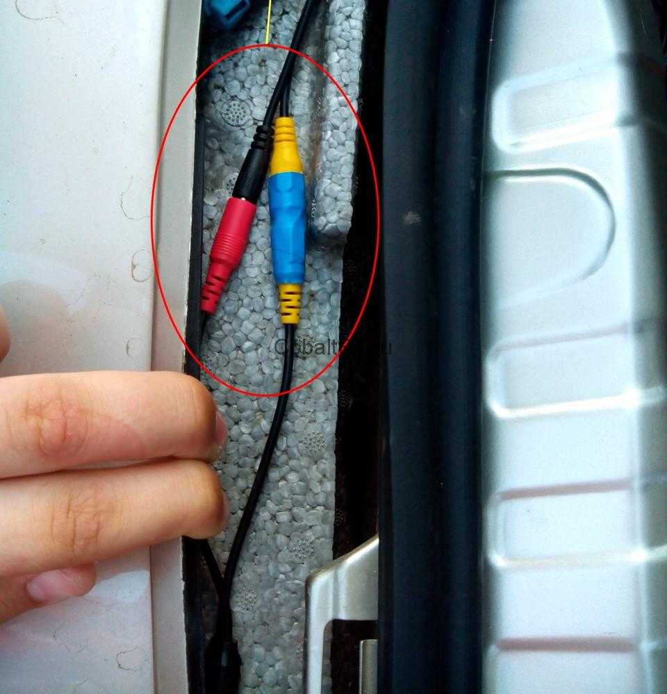 Затем провод сигнала тянется вдоль задних дверей под уплотнителями или потолком автомобиля и выходит рядом с зеркалом заднего вида на монитор-зеркало.