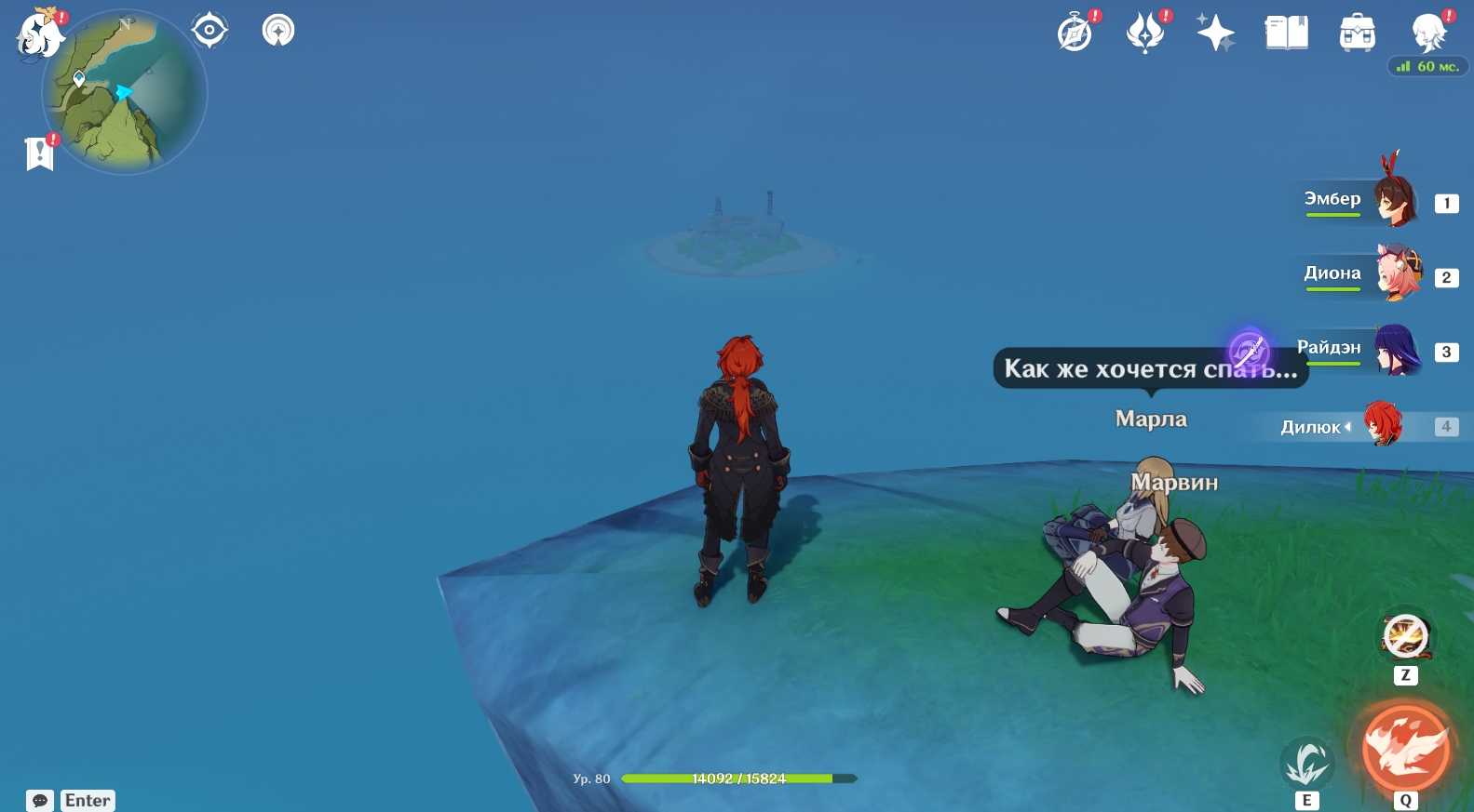Вашей задачей является долететь до этого острова с помощью планера. Как только «влетите» в область острова, оба достижения будут вашими. Чтобы продлить время полета, используйте еду, уменьшающую затраты выносливости на парение, и добавьте в свой отряд героев с полезными для этого случая талантами. К примеру, бесплатный персонаж Эмбер сокращает затраты выносливости на полет на 20%.