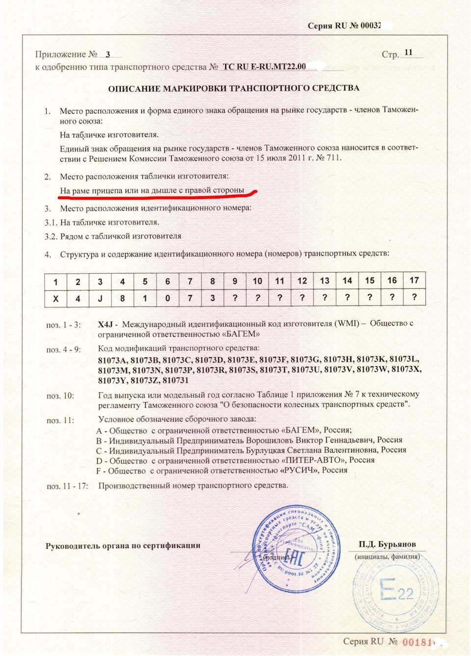 А потом мы выросли и получили новый WMI — «X4J» , что позволяет производить транспортные средства БЕЗ ОГРАНИЧЕНИЯ ВЫПУСКА ВООБЩЕ!С этими символами в начале VINа на протяжении последних 13 лет мы маркируем всю свою автоспецтехнику. Кстати, на сегодняшний день нашим предприятием выпущено около 60.000 единиц автомобильно продукции. Считаю, что это очень даже неплохо!))Вот так выглядит новое свидетельство: