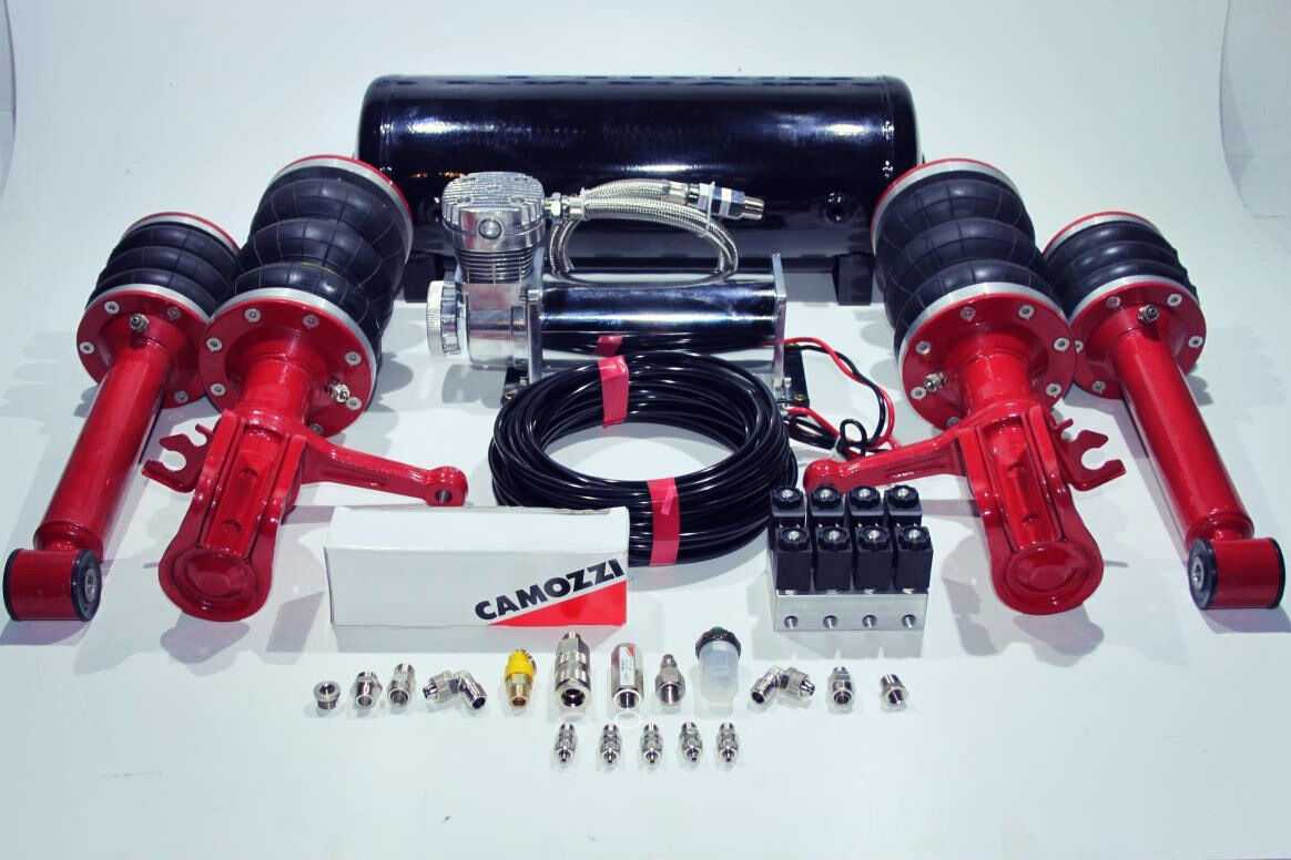 С другой стороны, если Вы хотите, чтобы автомобиль поднимался или опускался всего за пару секунд, необходимо установить пару компрессоров мощностью 150 psi (фунтов на кв. дюйм) и 2 или более 5-галонных емкостей, огромные промышленные пневмоклапаны и 31/44-дюймовые пневмолинии.
