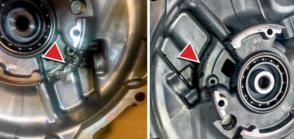 Беда гибридных модификаций Lexus — трещина боковой крышки трансмиссии, появляющаяся в одном и том же месте. Это конструктивный просчет японских инженеров, который не был исправлен и на современных моделях. Отдельно деталь не продается — по гарантии меняют коробку в сборе. «Гибрид Сервис» разбирает трансмиссию и заваривает трещину аргоном, после чего узел продолжает работать в обычном режиме без каких-либо проблем