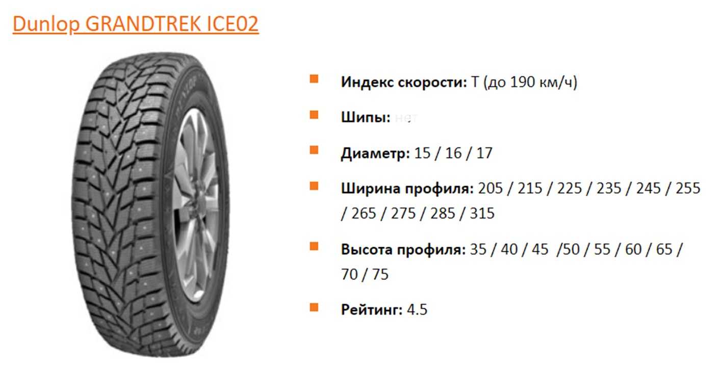 Dunlop GRANDTREK ICE02 – бюджетная альтернатива рассмотренной выше модели. Ice 02 также оснащается множеством шипов. Однако резина Dunlop не отличается выносливостью, сравнительно быстро стачивается.