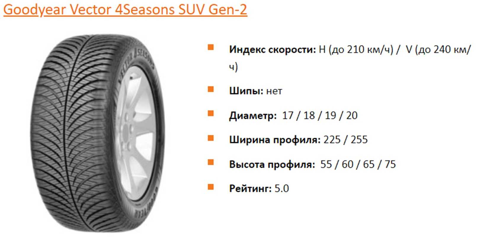 Goodyear Vector 4Seasons SUV Gen-2 обеспечивает комфорт на дороге любого качества. Благодаря особому составу использование возможно даже зимой – такие шины не дубеют на морозе.