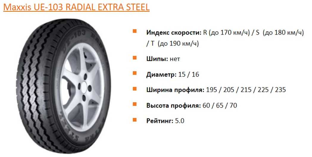 Водителю стоит заранее приобрести два комплекта подходящих шин – отдельно для летнего и зимнего времени года. При небольшим бюджете хорошим выбором станет Maxxis UE-103 RADIAL EXTRA STEEL. Такая резина отлично держит колею, позволяет передвигаться на скорости до 190 км/ч.