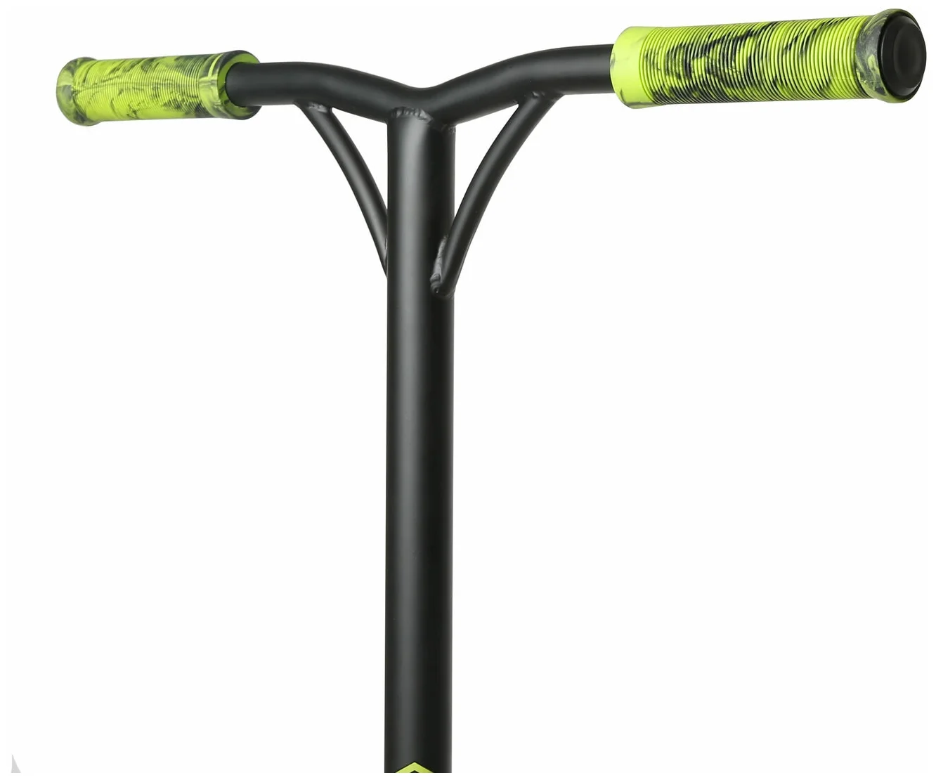 Самокат предназначен как для выполнения трюков, так и для городской езды. Отличается прочностью, долговечностью и ярким дизайном. Модель дополнительно оснащена специальным ремнем для переноски на плече и выдерживает нагрузку до 100 кг.