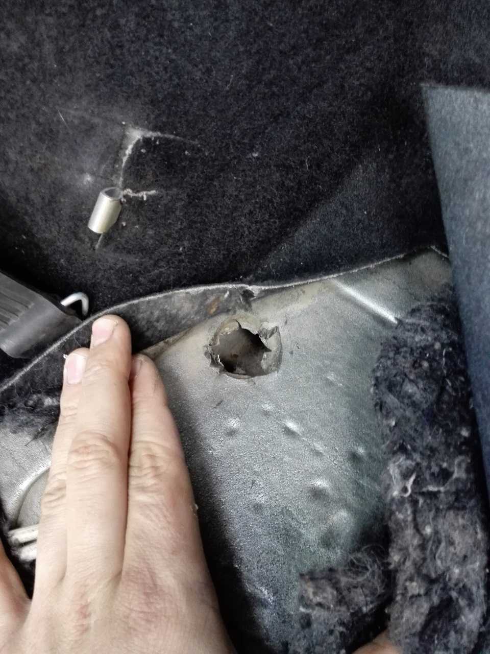 Но по прошествии полутора года эксплуатации выявился ещё один серьёзный недостаток: Начало рвать металл в багажнике возле просверленных отверстий И если справа процесс только начинается: