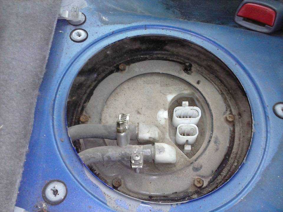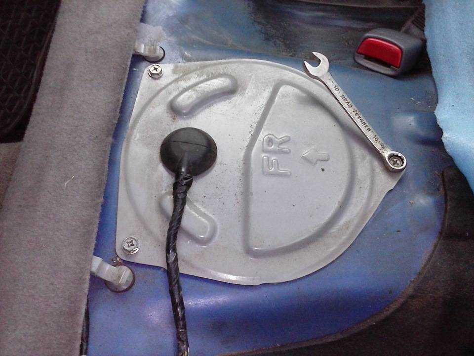- Бензонасос устанавливается прямо в бензобак. Добраться к насосу можно из салона, так как он находится под задним сиденьем. Для получения доступа к бензонасосу необходимо демонтировать подушку заднего сиденья или откинуть половину дивана (при наличии такой возможности).